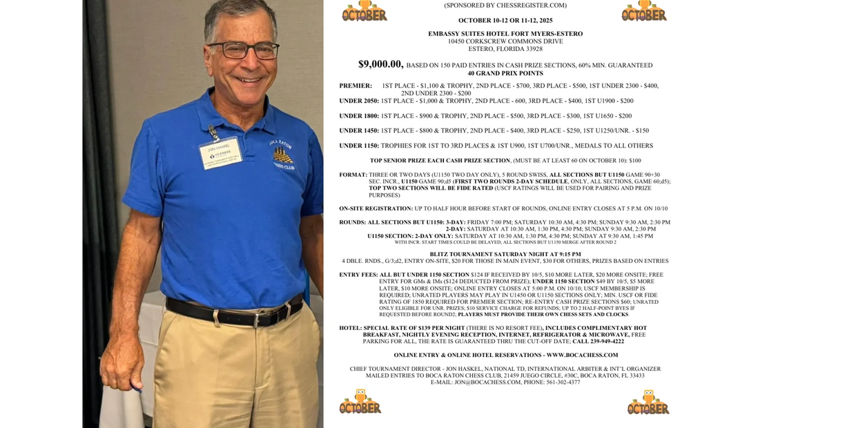 El Gulf Coast Open 2025 reafirma el compromiso del Boca Raton Chess Club y de Jon Haskel con el desarrollo del ajedrez competitivo en Florida, manteniendo viva la pasión por este deporte que sigue creciendo en todo el estado.